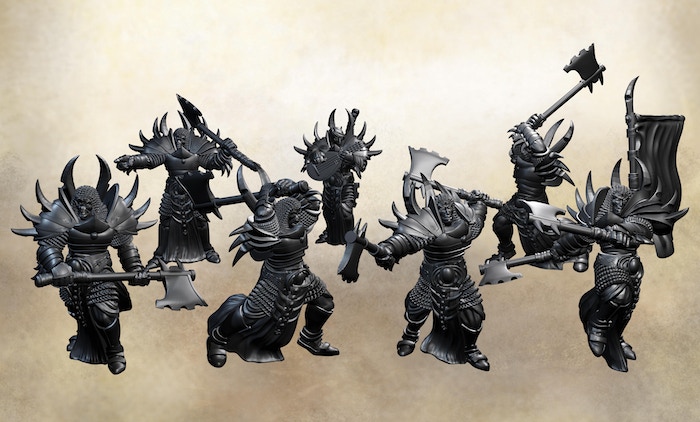 Alle Elfenhäuser unterhalten grössere Gefolgschaften von Schwertkämpfern, Speerkämpfern und Axtkämpfern in ihren stehenden Heeren. Diese Streitkräfte werden Gefolgsleute genannt und sind ob ihrer Fähigkeiten hoch geschätzt. Diese Gefolgsleute sind professionelle Soldaten die aus dem jeweiligen Haus loyalen ergebenen Familien kommen. Sie sind von Kindheit an im Umgang mit ihren Waffen geschult. Anders als bei anderen Völkern, ist die Mitgliedschaft in einem dieser Orden den Kindern adliger Familien vorbehalten. Das einfache Volk kann nicht in diese Orden aufgenommen werden.Die Axtkämpfer sind erfahrene Veteranen welche oft als Leibwächter von Adligen dienen. In der Schlacht werden sie eingesetzt um feindliche Formationen zu brechen oder bilden die Sturmspitze in den elfischen Angriffen. Im Kampf benutzen sie ihre riesige Streitäxte um blutige Lücken in die feindlichen Ränge zu schlagen und so Furcht in deren Herzen zu erregen.