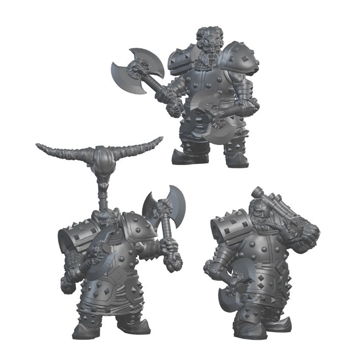 Die Axtkrieger sind eine weitere Eliteeinheit der kämpfenden Zwerge und auf den Nahkampf mit zwei Waffen spezialisiert. Während ihrer Ausbildung wird auf die Vermittlung flüssiger Bewegungsabläufe, Angriffe und Paraden, wert gelegt. Schon so mancher Elf fand sich diesen geübten Kämpfern plötzlich waffenlos gegenüber und wurde in Stücke gehauen. Die Axtkrieger haben auf dem Schlachtfeld eine vernichtende Präsenz und signalisieren ihren Angriff, indem sie ihre beiden Äxte vor der Brust kreuzen. Es kommt häufig vor, dass die Axtkrieger hinter einem Verband Kriegsschilde in den Nahkampf ziehen um auf dem Weg in den Nahkampf vom feindlichen Feuer unbehelligt zu sein.Bilder