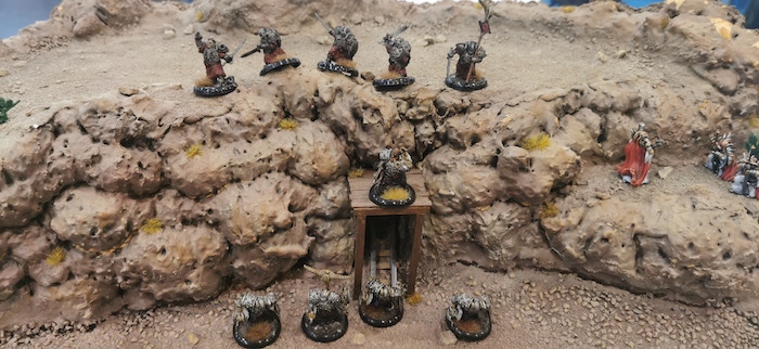 Dwarf Blood Totem charging against Lotus Guard (poor guard, but have to admit he has a nerves of steel)