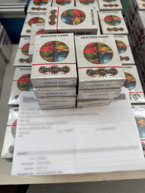 Right after SPIEL we will start sending out the remaining parcels to our German backers and non-EU international backers, except for the USA. As you probably know, there are currently massive problems with US customs on both sides of the Atlantic that have to be sorted out by higher powers than us.