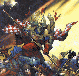 Nur die tapfersten und verdientesten der Reichsritter können zu Königlichen Paladinen geschlagen werden. Sie bilden die Elite der königlichen Armee und haben viele der größten Siege der Erstgeborenen errungen, einschliesslich der Wiedereroberung von Nereth und des Sieges über die Lakaien bei Kragorns Joch. Sie tragen bevorzugt Plattenpanzer, und ihre prächtigen Helme werden vom Schmied des Königs persönlich und einzeln gefertigt. Diese Helme sind ein Zeichen der Ehre und des Stolzes, die sie für sich und die Erstgeborenen im Kampfe errungen haben. Sie tragen grosse, rasiermesserscharfe Stangenwaffen, und auf ihren Rücken prangt das Zeichen des Wahrhaftigen Königs.Bilder